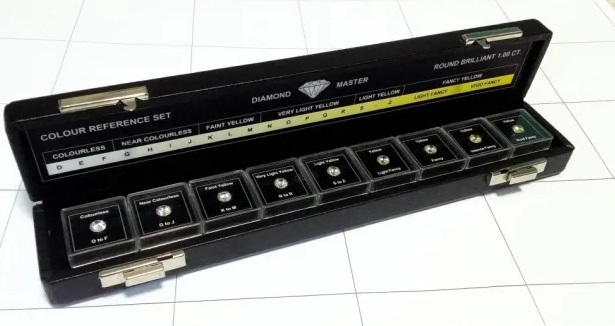 When grading a diamond, professionals compare it with different stones in the master set. First, they identify the two master stones between which the test stone’s colour lies. One is lighter than the test stone, the other darker. They then assign the test stone the colour grade of the lighter master stone.